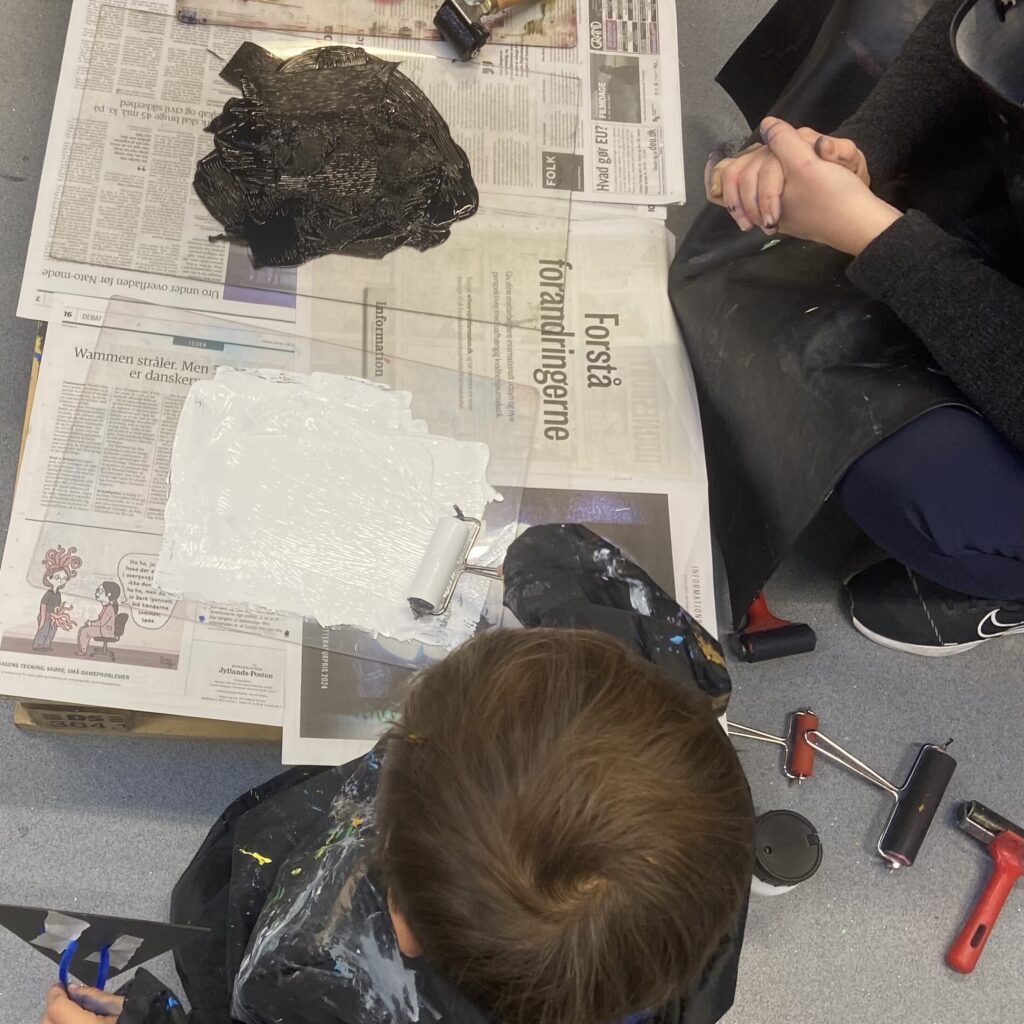 I kreaværkstedet stod tre studerende – Emilie Hejndorf Willumsen, Michelle Holm Heyde og Emily Louise Mulholland – blandt andet for en workshop, hvor børnene lavede malingstryk og skød med vandpistoler ladet med maling.