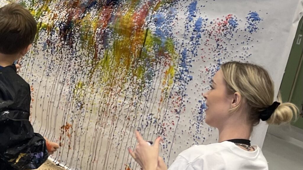 Emily Louise Mulholland fortæller, hvordan de under workshoppen oplevede, at børnene var begejstrede over at få lov til at lege med maling på en helt ny måde: ”De har jo prøvet at sprøjte med vandpistoler før – men aldrig med maling,” fortæller hun.
